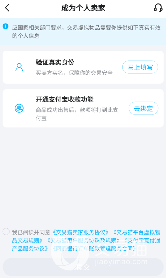 交易猫上只是想就单款游戏进行售卖的话,只需要申请成为个人卖家即可,这个申请的流程只需要你验证实名和绑定首款账户即可,两个步骤都能很快完成,因此申请手续可谓是非常简单了。而且之后的申请审核时间也不会太长,因为交易猫作为大平台,客服的能力效率都是非常高的,能够很快处理这些日常事宜。