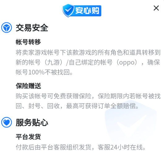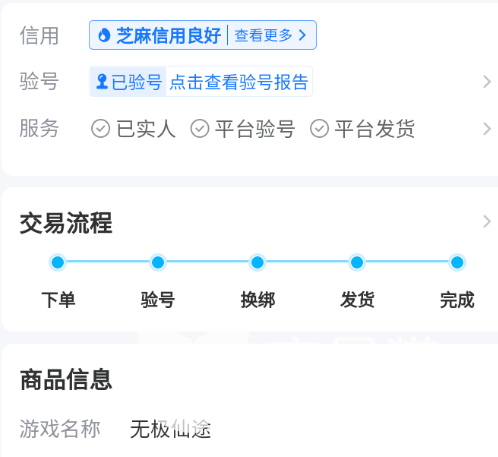 前文说过无极仙途的官服换绑有一定难度,而且现在游戏大多都绑定了实名,同样会存在找回风险,因此大家可以在平台中找到标签有“账号转移”的商品,这类商品不仅会让换绑环节迅速完成,而且它不同于传统换绑形式,它是直接将卖家的账号数据转移到您的账号上,从而极大的提高了交易安全性!