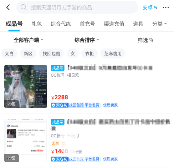 好的,以上这些就是天涯明月刀可以买号吗的全部内容,其实在这里购买账号是最好的选择,因为交易猫有着严格的管理,账号的安全性和游戏中的资料都是通过了严格的审核之后才会上架交易的。像一些小平台经常会出现交易被骗的情况发生。