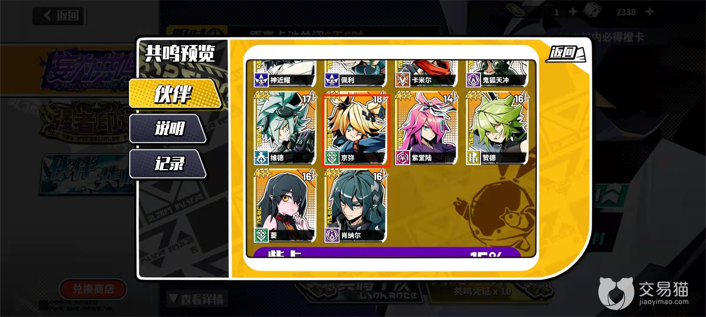 最后在本身已获取京弥的情况下,如果还想再获得一只,那么这时可以点进共鸣页面左下角的兑换商店进行信物兑换,橙卡角色需要六十个对应信物即可合成,不过兑换橙卡角色信物所需的共鸣碎片是分三次进行且数量逐渐递增的,整个过程需要消耗足足120个碎片,这些碎片都可以在抽卡途中获得,所以本身仍然是只适合抽卡玩家的途径。