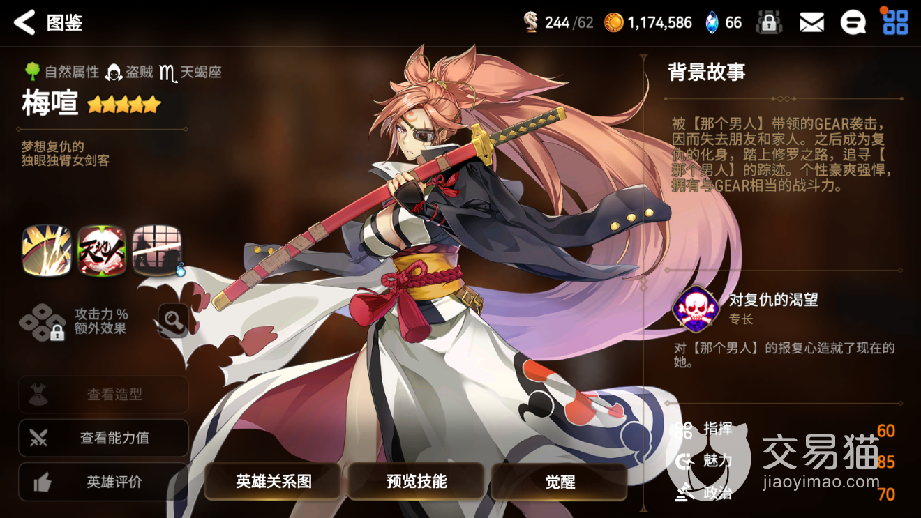 游戏中的梅宣拥有高爆发的伤害和拉条,因此能够快速的将队伍队伍中的脆皮击杀,这样在战斗中拥有更好的优势。而梅宣还可以利用光敏和水奶的免疫效果能够克制肉盾光系队。就像三眼这种角色,玩家如果不尽快将它秒掉,那么在后期他能够给你造成很大的麻烦。
