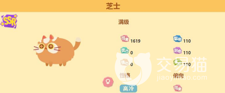 首先第一个要给大家推荐的猫咪叫做芝士,这是一个超级可爱的小美女,可爱以及灵巧值都是很高的,最高可以达到1619的可爱值,外观超级可爱,是一个ssr的猫咪角色,同时它还有自己的额外属性加成,玩家们可以使用这个猫咪轻松地通过主线关卡,在任何小队中都是很吃香的哦,小伙伴们有条件的一定要养成,看上去就很是赏心悦目。