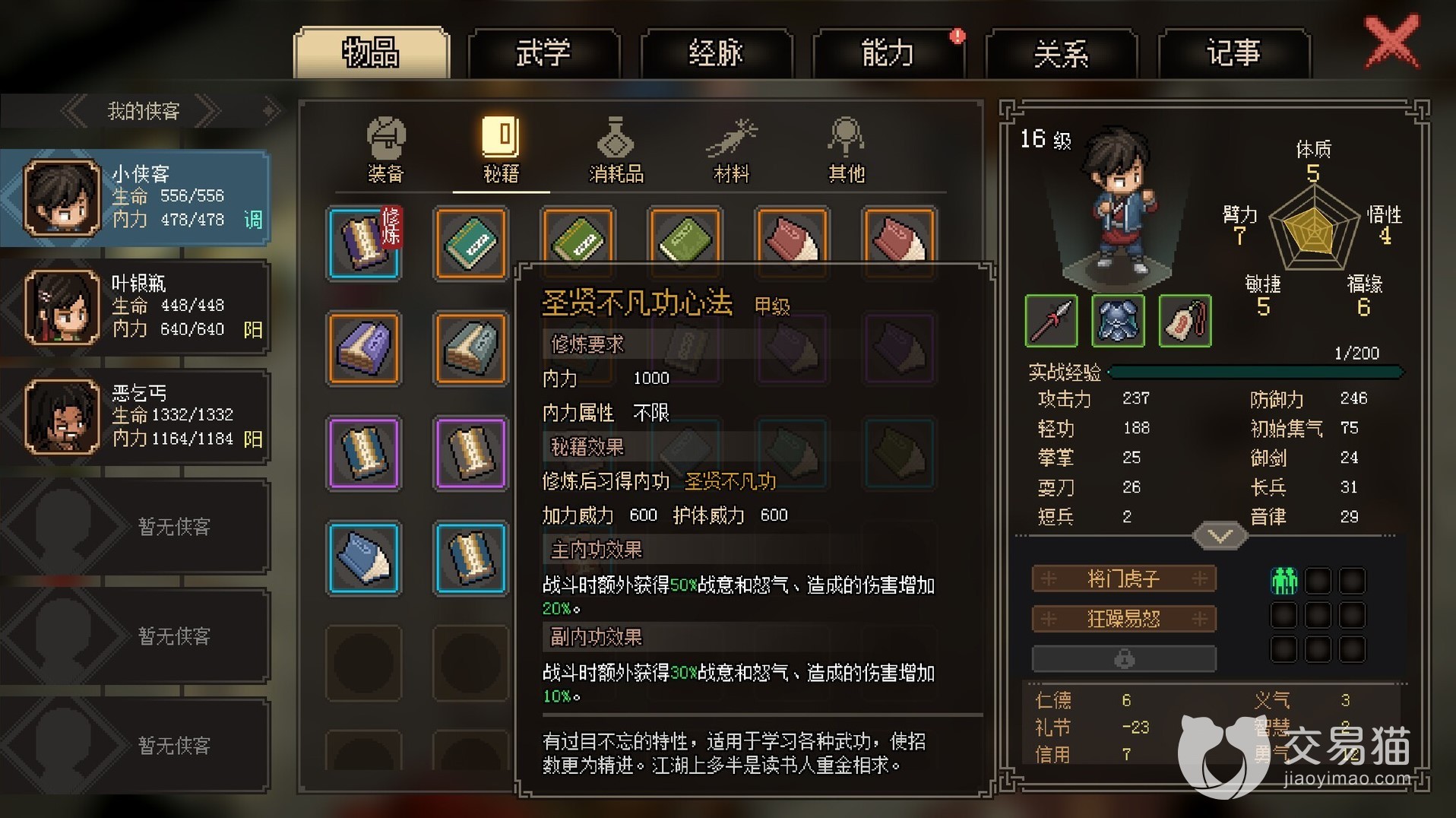 以上就是大侠立志传内力的相关介绍了,内力这个概念可以说已经在武侠界使用了多年,就像法力值之于法师,查克拉之于忍者,武侠游戏在这方面的探索,还会继续,期待有更多有趣的玩法出现。
