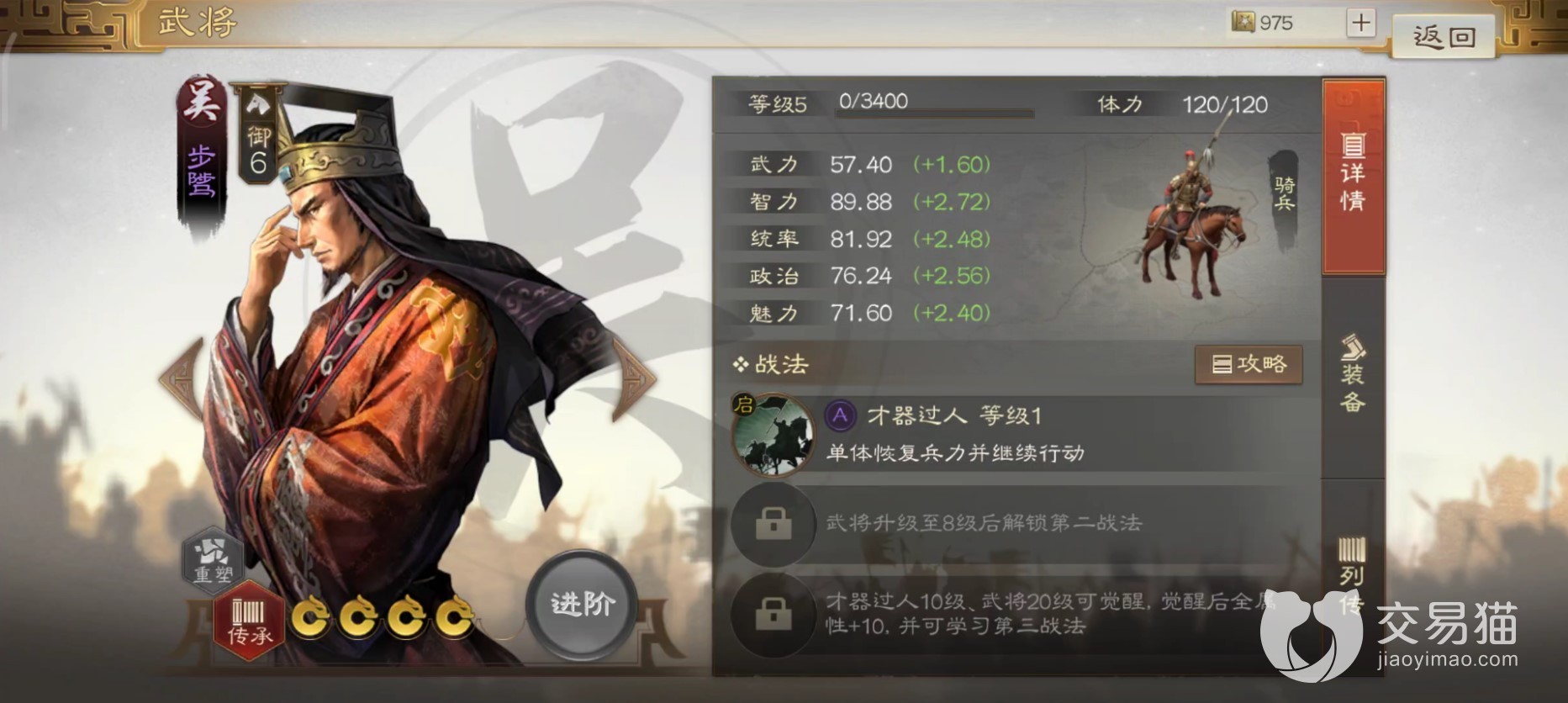 上述这些都是紫将搭配,如果有同定位的橙将自然是用品级更高的了,毕竟属性差距还是很大的。骑兵的特色在于行动力高能克制步兵,能快速突破敌人的防线,斩杀对方脆皮单位。