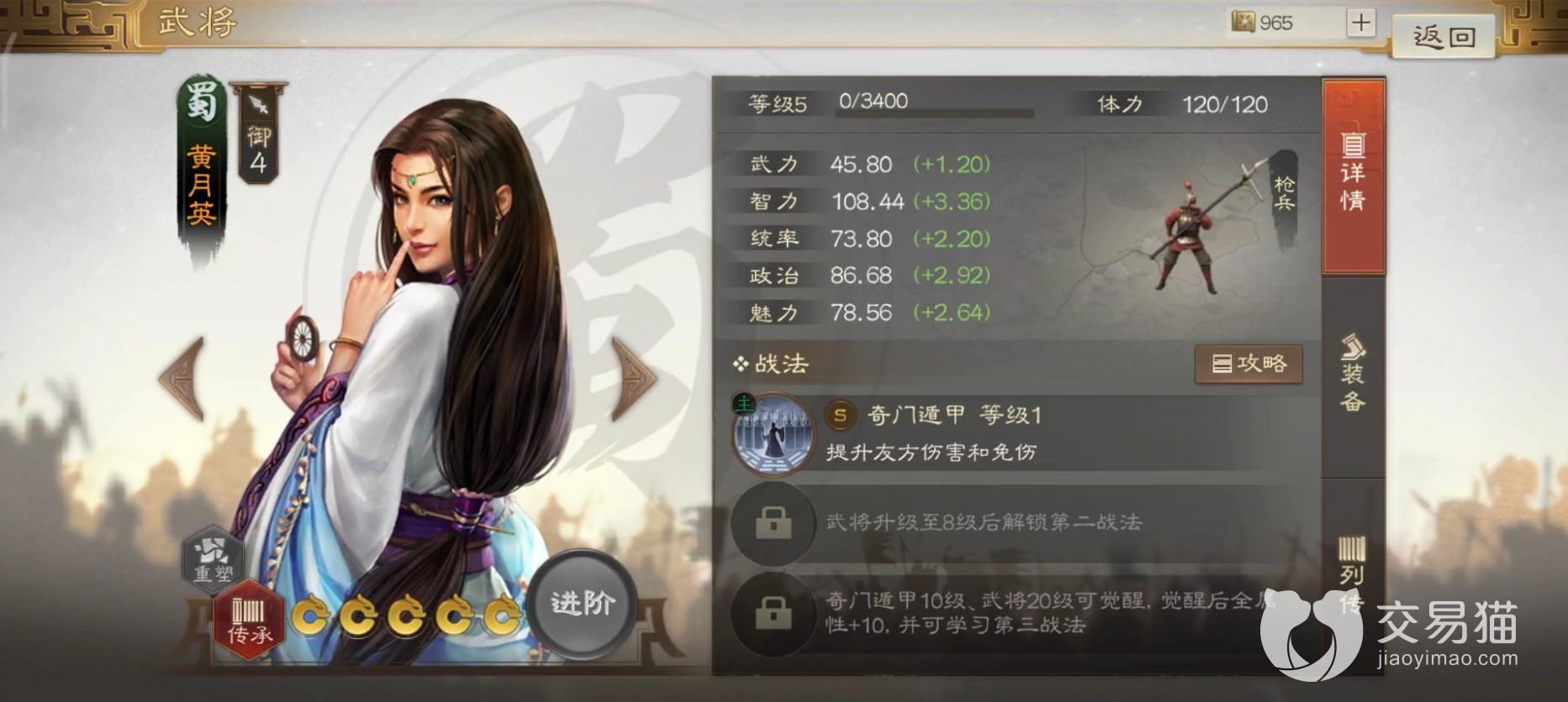 为了丰富输出类型,再添一个谋略输出武将会比较好,诸葛亮不太敢想,可以考虑下杨仪或者张松,前者输出更高一点,后者输出稍逊但有奶。最后一个位置可以上黄月英,因为队伍里不少武将都自带治疗,加个黄月英来抬高群体输出和免伤更好。