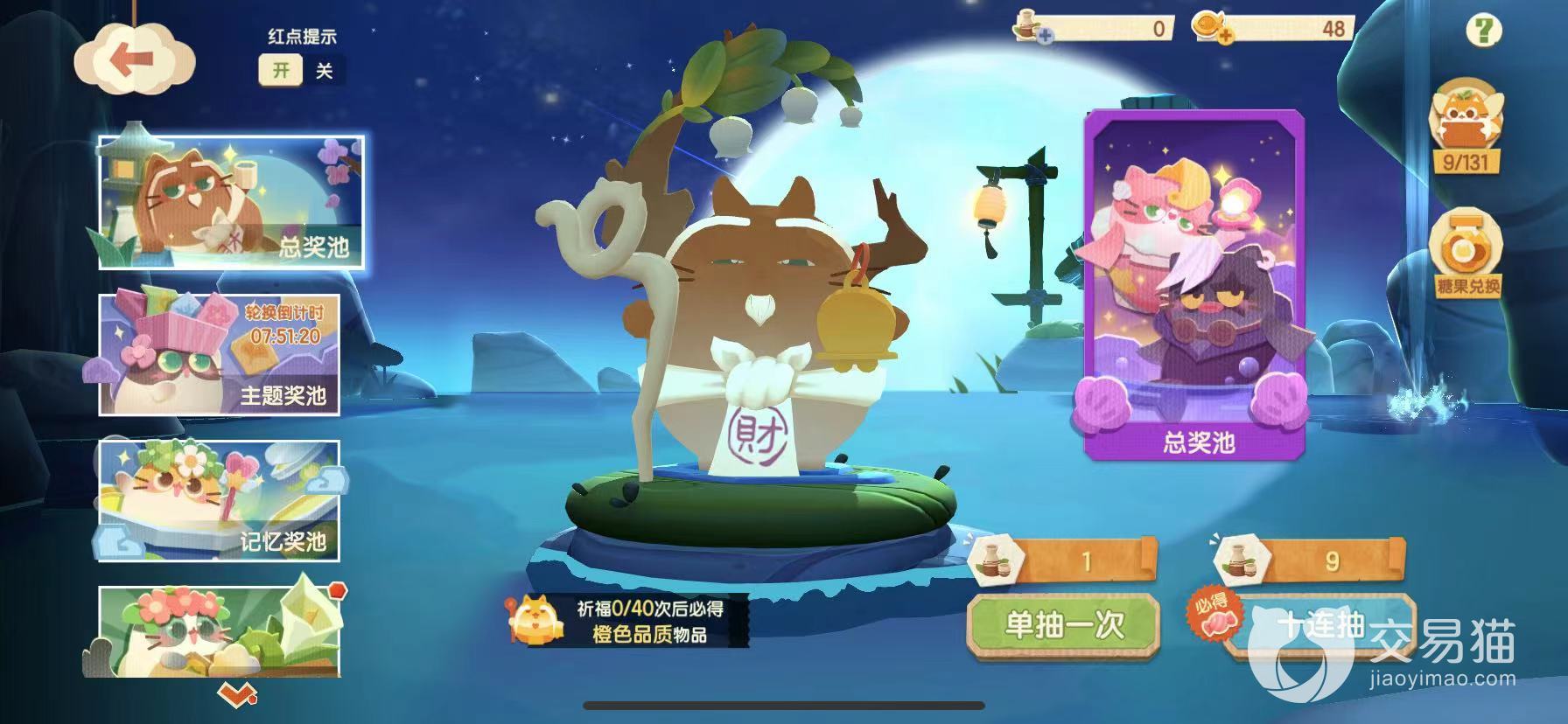 第二种方法是通过抽卡的方式获取小猫咪,玩家们可以在地图内选择祈福,在这里面是有多个卡池可以抽取的,其中总卡池以及主题卡池里面都是有猫咪们存在的,玩家们可以进行抽卡,十连抽是小编最推荐的,获取高品质猫咪或者玩具的概率会更高一些。