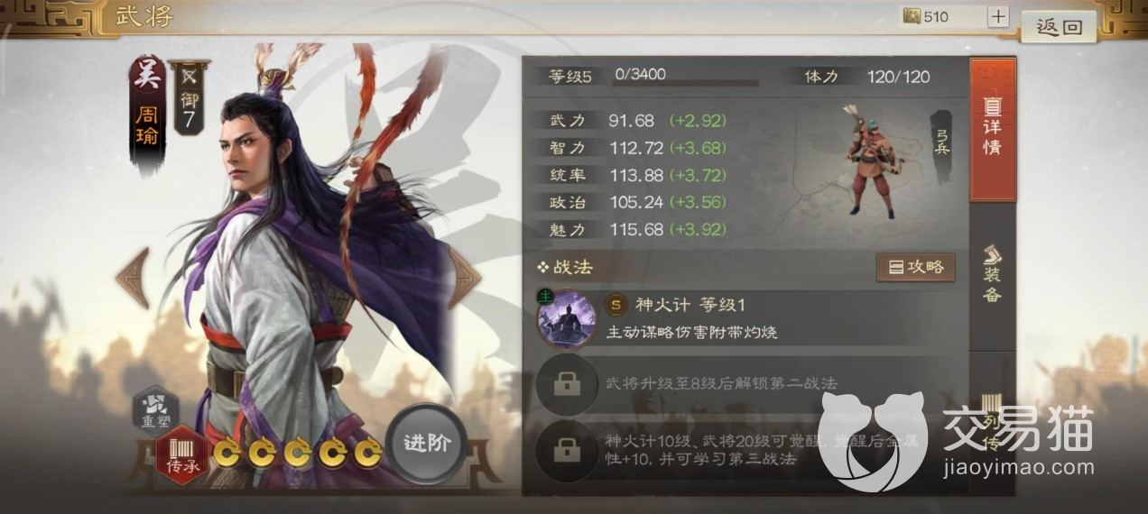 周瑜战法主动释放后造成群体输出,在被动效果影响下,对伤害目标附加灼烧状态,和陆逊可以很好的叠加起来,尽快将对方所有目标全部带上状态。如果施法范围内只有一名敌方武将,则造成灼烧状态为两重,在使用时候利用这一点可以自由选择释放范围,达到不一样效果。这两名角色在技能搭配方面都有一个很好的选择,那就是风助火势,完全为火烧队所准备的战法,由东吴黄盖传承获得。效果是在选中单体伤害目标时,如果对方已被灼烧影响,则将单体伤害扩展为群伤。