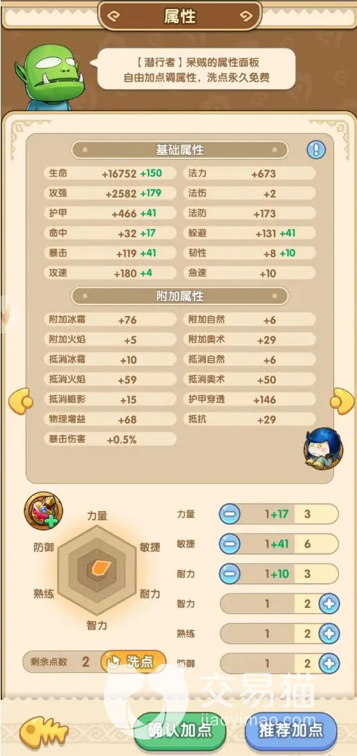 3、贼:作为潜行者的他,主要任务就是输出最大化。那么在在属性的选择上,敏捷和力量就是关键。当然选择闪避来提升生存也是可以的,这个看大家的需求了。