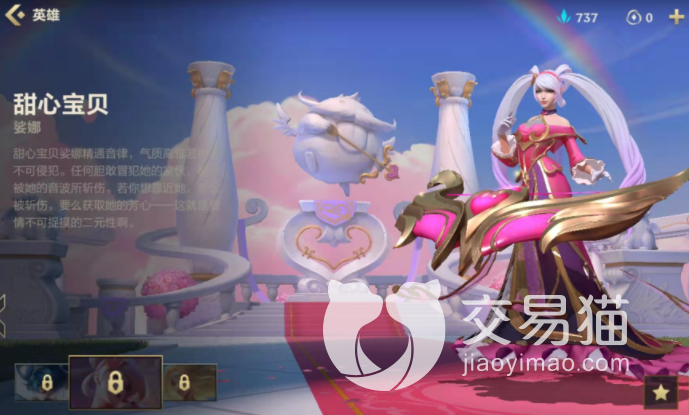 最后是可爱系的琴女娑娜,琴女这个英雄可以说与猫咪差不太多,都是手残友好的英雄,对于不少操作反应苦手的玩家来说,此皮也是琴女相对优秀的限定皮肤了。