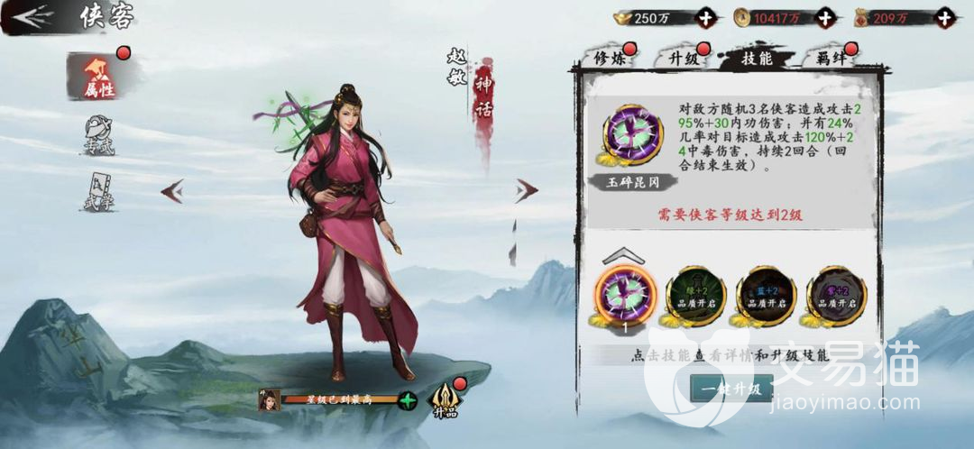 三号位和四号位都是输出位,选择赵敏和欧阳锋在这个位置,这两名角色的主要任务就是给对方挂上毒伤,配合张三丰的内力伤害,可以很快造成敌方减员。