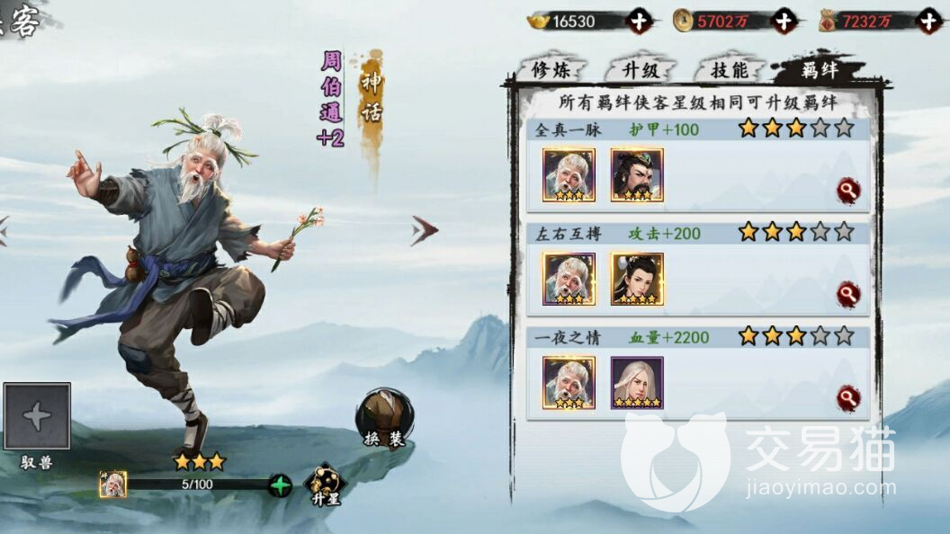 最后五号位的周伯通的主要作用是给队员加外功减伤,以此保护队友;而他特有的复活技能,更是可以保证即便张三丰先手被秒,也可以第一时间回场,因此这名角色也需要重点保护,建议多给他堆积血量和护甲。