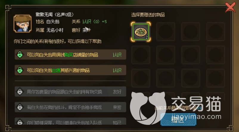 大侠立志传npc喜好什么 无名村人物喜好内容说明