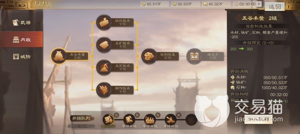 到了后面解锁了科技和天赋树后,像五谷丰登和耕作技术天赋点上,也会增加额外的粮食产量,因为资源点有限,所以大家根据自己急缺的资源,前期自行点天赋即可。