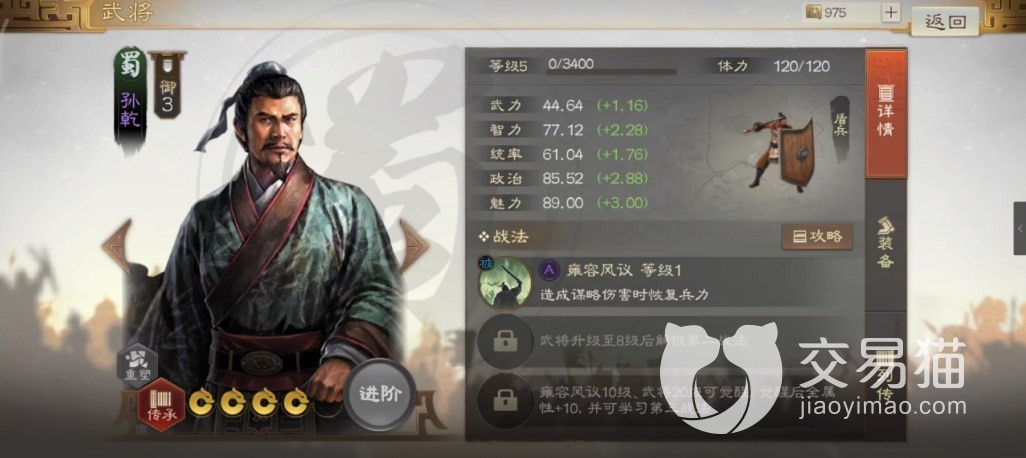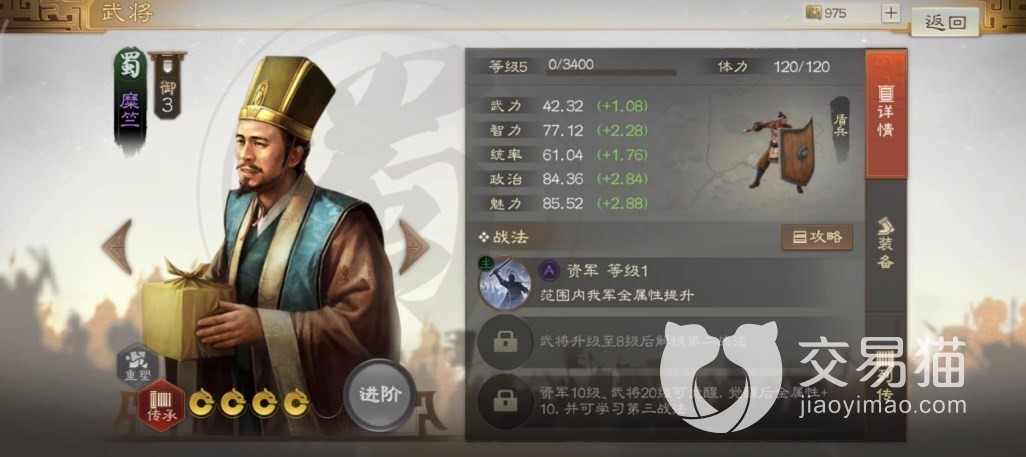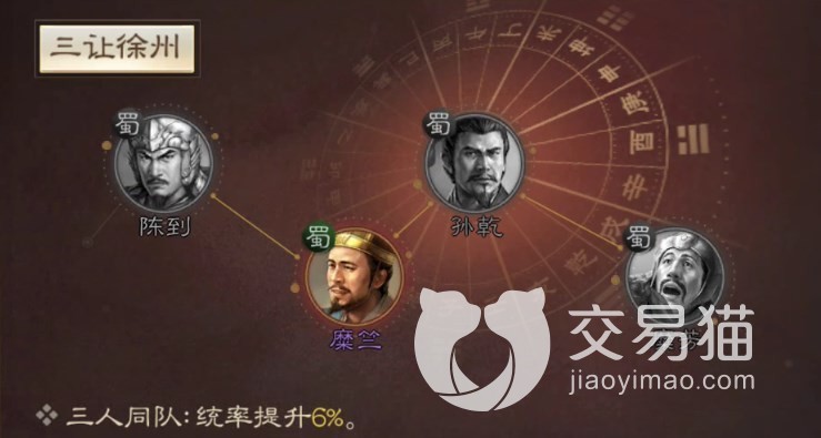 技能升满之后糜竺高额属性加成,能给队伍以极大的加成,与同样近战的孙乾、陈到的抱团,不仅可以获得同队兵力加成,也能形成一个相互增益的闭环,糜竺加属性,孙乾自带回复,陈到则可以增加大家的行动力同时附加额外伤害。