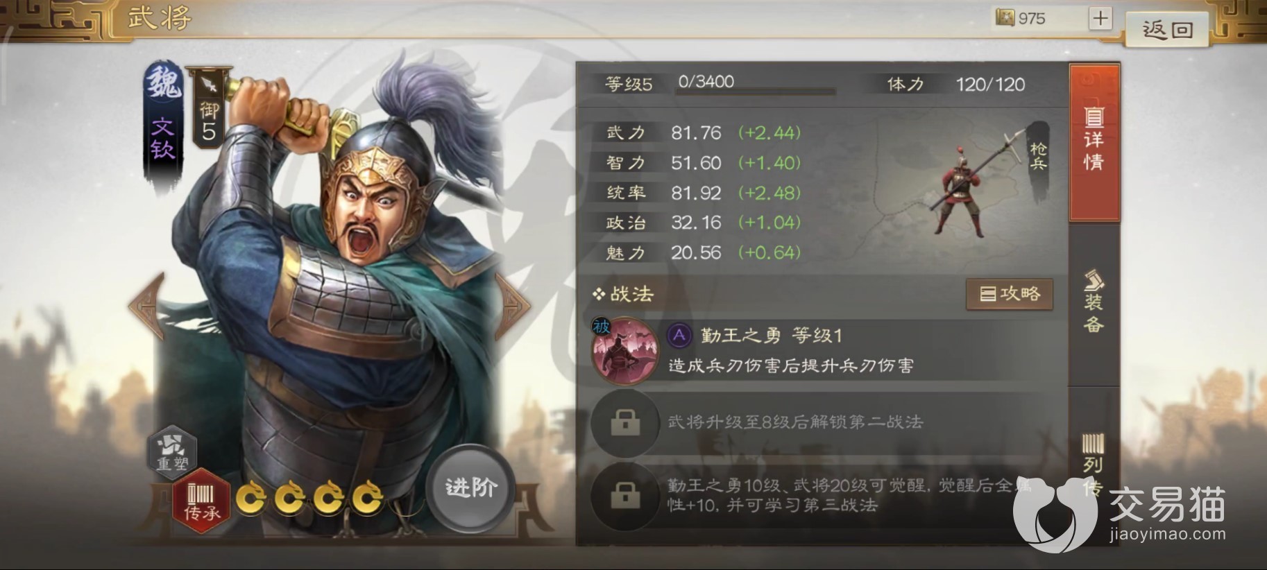 剩余2个位置,可以选择1骑或者1枪,外加1个辅助位。骑兵武将可以用曹洪、李通,枪兵武将推荐文钦、臧霸、文聘选其一,差距不是特别大。辅助位可选的不多,增伤用王异,加血用甄氏或者满宠。