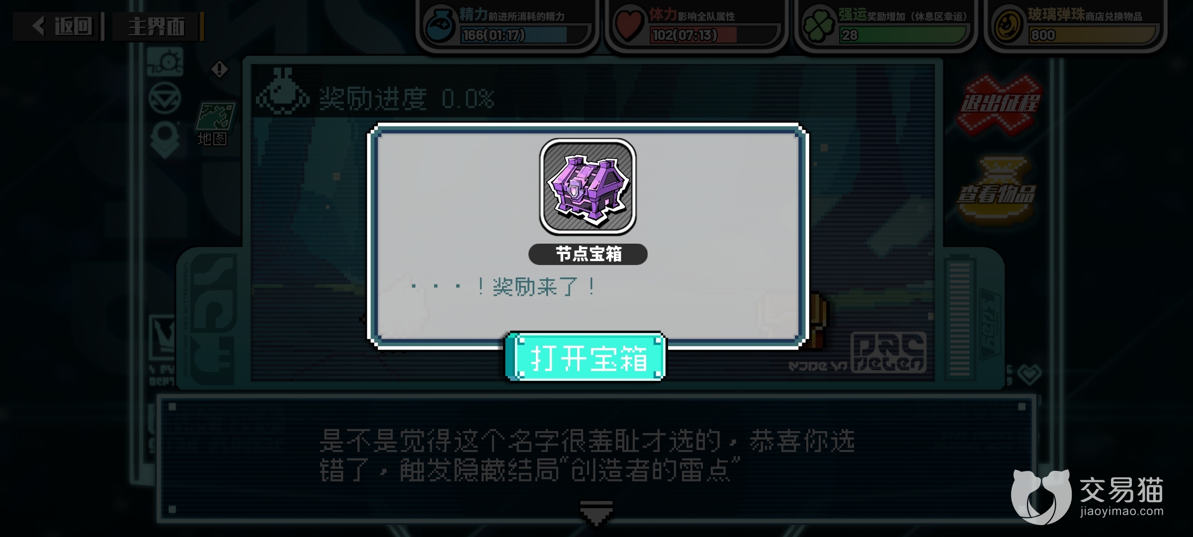 闯关的条件很简单就是拿取节点宝箱,就是图示的紫色宝箱,玩家开启之后可以出钥匙,还有积分以及抽奖券等内容,而且闯过一次就会出来。