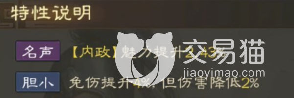 这个角色还有一个特性叫做胆小,因此玩家可以利用这个角色的特性特高免伤能力。鲍信说实话还需要玩家们自己去探索这个角色在游戏当中更能发光发热的位置在哪里,毕竟一个数值平均的武将,不可能会没有用武之处的。