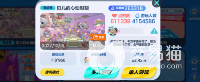 相信妹纸们应该都很喜欢自从去年9月就红得发紫的玲娜贝儿吧!小狐狸粉嫩毛茸茸,调皮果敢,当起了探险家。正因为如此,玲娜贝儿才被大家喜欢,才有了一个别名——妲己,叫川沙妲己。然后在蛋仔趴玩耍的创作大神也被belle的魅力所感染,为大家打造了一张专属belle的地图。玩家选择游玩,加入地图后就能看到各种大小的Belle满屏,堪称是玲娜贝儿粉丝的乐园。在色彩的选择上由于贝儿是粉色的,工程师大神给贝儿的搭配以浅色系为主,在制作这张地图的时候确实能感受到创作者在屏幕之外对于川沙妲己的用心和喜爱。