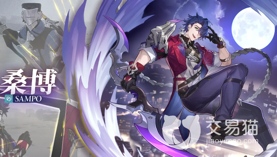 首先要介绍的男角色就是pv中第一个看到的角色桑博,他的设定很有意思,他是一个话痨角色,只要他在身边你就会多一个旅途向导、聊天对象,桑博的整个外观形象也比较帅气,有着一双非常慵懒的眼睛,在待机时会时不时的转动武器匕首,战斗中他会使用匕首进行攻击,释放大招时会掏出一个不知道从哪里搞到的藏着炸弹的礼盒,总的来说桑博是一个非常滑稽有个性的角色。