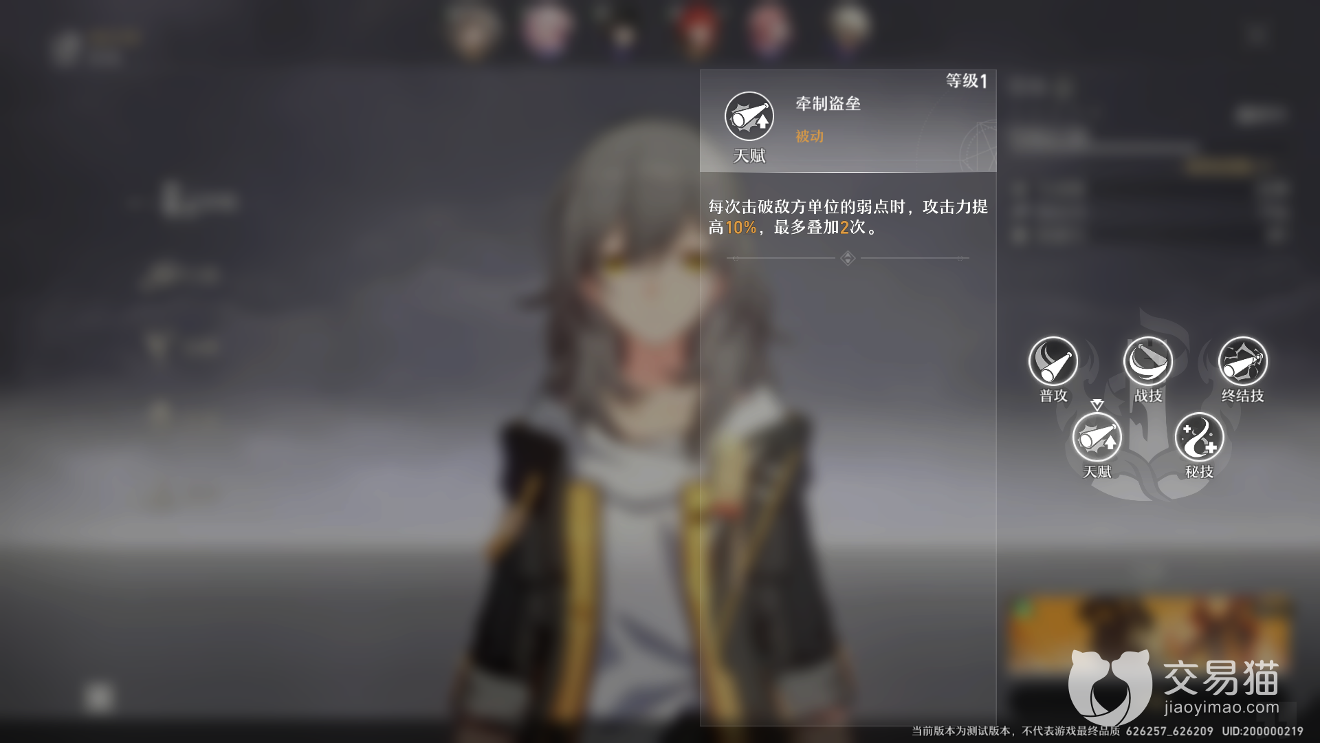 大招有两个效果,第一个效果就是直接对敌方造成高额的单体伤害,另一个效果是对敌方首个目标造成1.5倍左右的伤害,然后再对附近的敌人造成一次百分比的伤害,相当于群攻技能,最后的被动技能是敌方有弱点击破的话,自身的攻击属性可以得到增长。