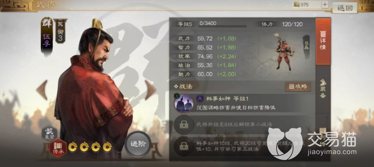 伍孚作为一名比较特殊的武将,大家是觉得他是战斗方面还是内政方面更加出色呢?虽然伍孚只是一名4星武将,而且没有出色的属性,但是强大的战法和特性为伍孚弥补了战斗方面的缺点。