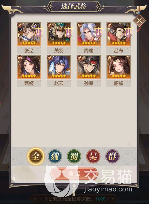 看完本期的玩家是否对武将的获取方式有了大致的了解呢,总之玩家如果想要获取武将的话最好还是多完成任务积攒一些元宝,只有元宝多的情况下才能够获得一些顶级的武将。