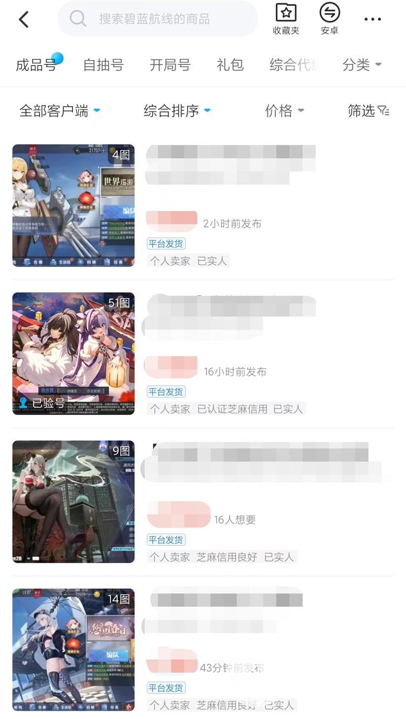交易猫内有碧蓝航线游戏交易专区,账号上架还是比较频繁的,可以选择的账号比较多,还可以看到被很多买家小伙伴想要的高质量账号,一般这种账号都是培养度比较高的,稀有卡牌比较多的,大家可以更关注一下。