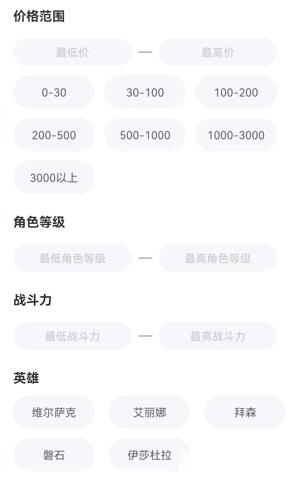 为了能够提高账号出售效率,平台对拉吉尔这款游戏设置了很好的展现模板。从账号详情中就可以直接看到有等级、战斗力和所拥有英雄等一系列方面。这样使得出售者在上架时候也无需自己介绍太多,只要按照模板填写就可以。购买者通过筛选和查看也能快速锁定自己需要的内容,节省了双方的时间,简化了交易流程。