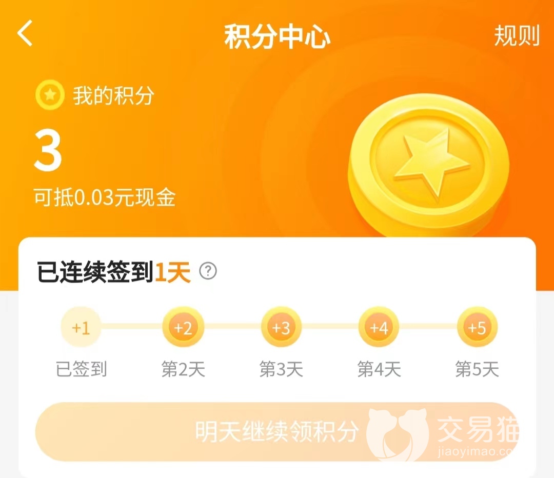 为什么推荐大家试用交易猫平台呢?因为平台不但安全、活跃用户多并且还时常有福利活动。例如用户每日都能参加的签到领积分活动就没有任何门槛,只要签到就可以领到积分。而积分不但能抵现金使用,还可以参与不定期举行的转盘抽奖能活动。