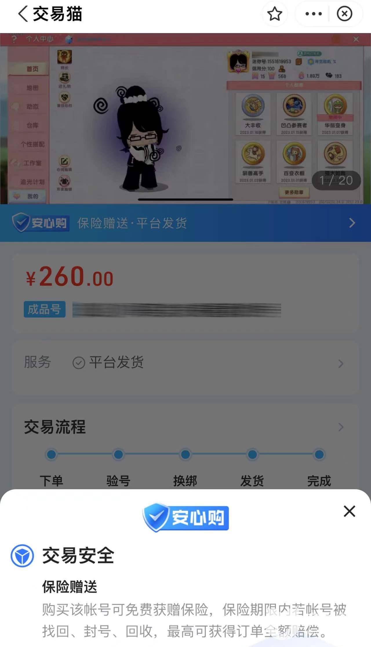 有些新入驻交易猫的卖家,会担心自己积累的声望不足,无人问津。其实不然,你可以继承蚂蚁信用度,让买家可以更好地查看你的信用度,从而放心地入手你的商品。另外,你还能够为买家投保,从而增加你的商品安全性,这样也能更大限度地让买家安心购买你的账号,成交率更高。值得一提的是,该平台的安心购服务只是部分商品提供,并非所有。所以就算你是新手小白,也能稳稳地卖号。