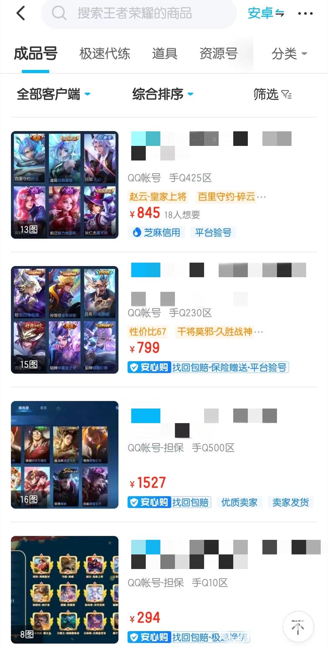 因为目前在交易猫只有部分游戏有专门的估值板块,所以有的小伙伴会问,如果自己想估价的游戏没有专门的估价板块该怎么办呢,小编再给大家分享一个方法;当你搜索相关以后,就可以看到各种类型的账号出现,这个时候你只要找到和你类似的账号,参考其他商品的价格,然后再对比自己的账号,比如你的账号有些稀有道具,你也可以适当进行加价。