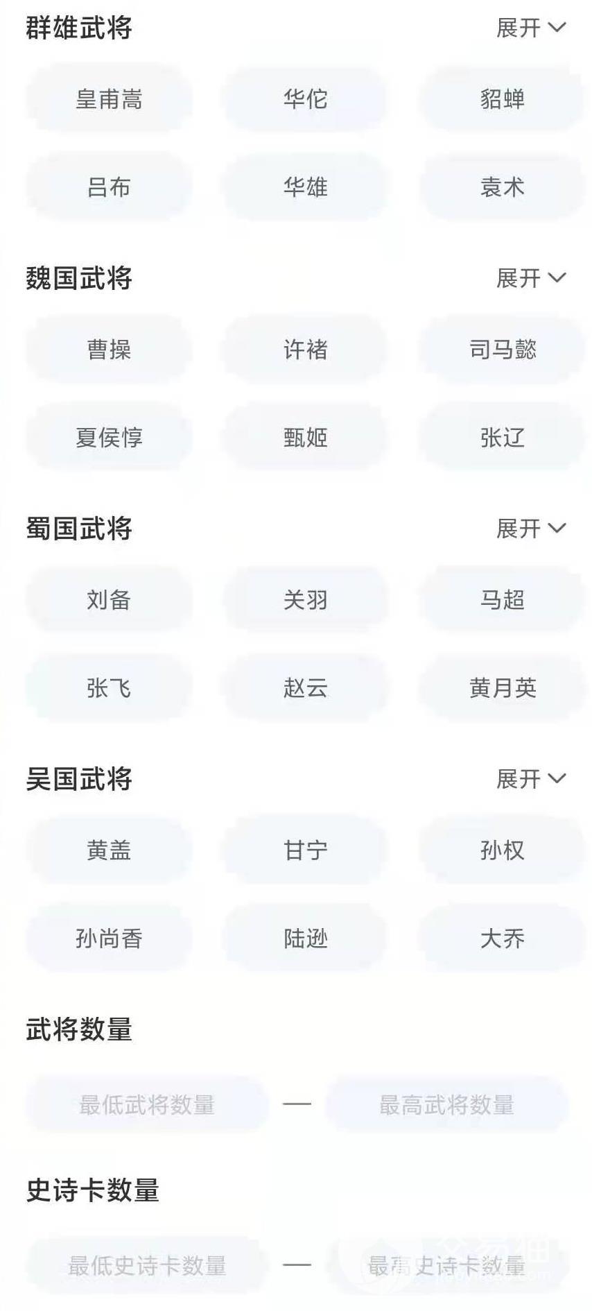 因为三国杀的角色特性,同名武将还会有界限突破和神将。再者交易猫上的三国杀ol账号数不胜数,如果一遍一遍来回翻看账号内的武将数量也是十分劳神费力的。筛选功能就是精准查阅账号的小帮手,可以单选或多选武将名称,比如魏国的张辽、蜀国的马超等等,还有史诗卡数量等更多选项,不存在找号的麻烦了。