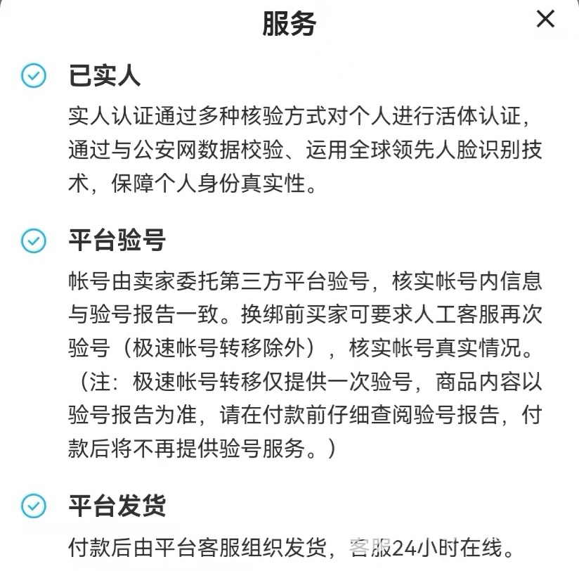 而且对于卖家有没有认证平台也会做出显示,为的就是让每一位买家都能放心的购买账号,账号会有卖家委托第三方去进行验号,对介绍和游戏真实内容进行核对查看,在大家购买账号换绑之前,也是可以再进行一个二次验号的,进一步的核实账号情况,对于商品中的具体内容还是要通过验号报告来了解,而且想换绑和发货等等的操作都是由平台来完成的,这样也极大的减少了被骗行为的出现。