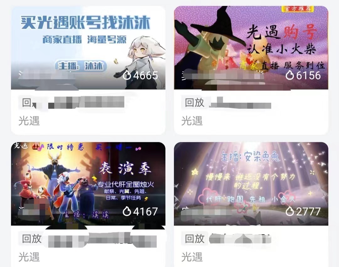 直播间的高价回收商也不要错过。交易猫官方直播不定期有光遇直播,有时间的玩家也可以关注一下直播内容,如果遇上了光遇高价回收商,也不妨试一试。在直播期间,可以在线估值在线销售。直播间也是一个知道账号价值的风向标,如果说想卖号的时候价值能翻一番,按照直播的时候收购的内容多留意一下游戏,搜集高价配件,也是一个卖号小技巧。