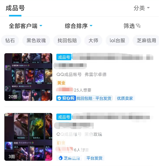 就像小编刚才说的一样,要想知道具体价格是多少的话,可以先找到lol专区并搜索关键词“龙的传人”,然后标题大致都会介绍有多少个皮肤,要是号里新皮肤多且限定多的话价格就会高,卖家就可通过这种方式来自行判断到底值多少钱,虽说现在也有很多专业人士和主播能为你的号估价,但把账号密码随意交给别人是很危险的,不如自己去对比。