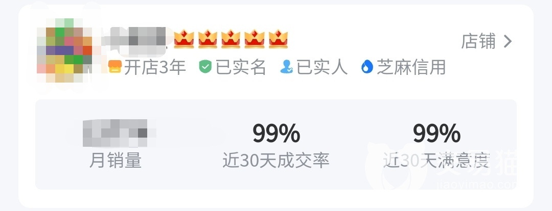 如果你想找到更为靠谱的卖家进行交易,平台提供了一些信息帮你筛选。比如在商品详情页有对方的芝麻信用情况,将页面下拉来到店铺信息栏,展示了有月销量、近30天成交率、近30天满意度的数值,顾客越多、评价越好,证明店铺越靠谱。