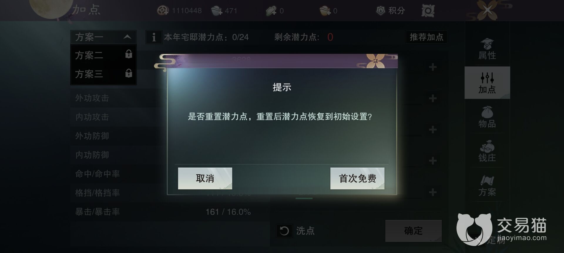 有的玩家担心点错,所以前期都不敢加点,想留到后面熟悉了再点,导致碰到一些boss的时候打起来很吃力,甚至打不过去,其实前期盲点全劲是基本不会出错的,实在点错了我们还可以点击下面的洗点来重置点数,且首次是免费的,所以玩家们可以完全不用担心。