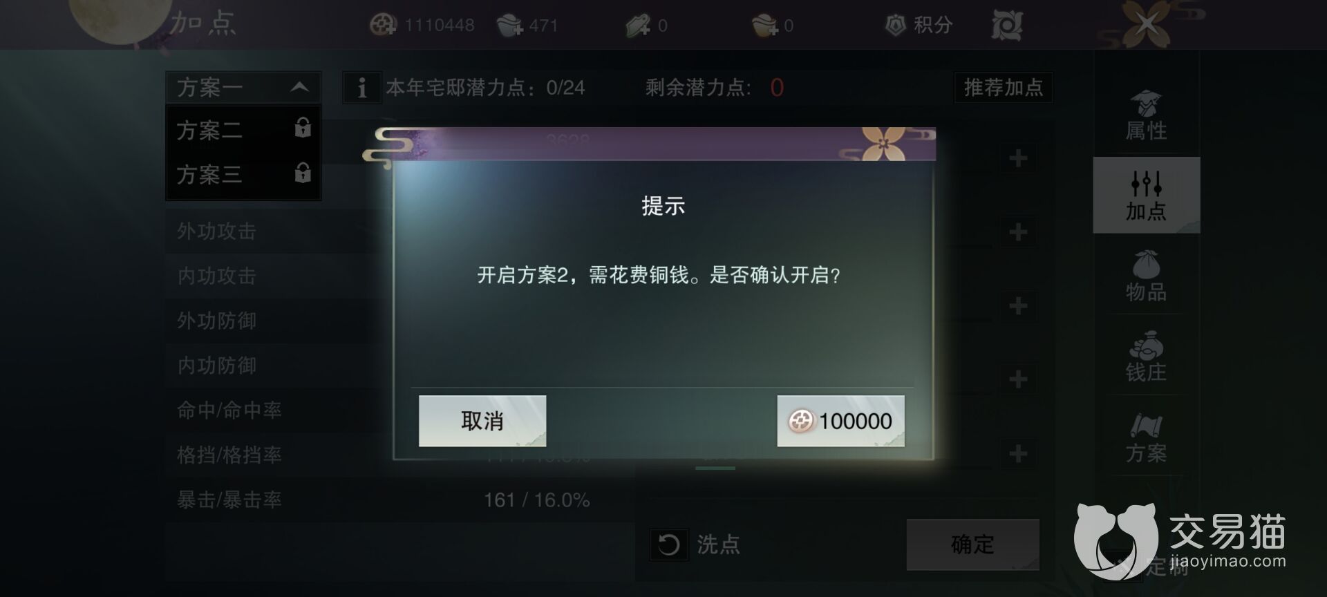 如果想要容错率高一点的话,可以点劲体,或者实在不知道应该怎么选择,我们左边会有一些方案供我们直接选择,不过需要一定的货币来兑换,玩家可以斟酌一下。