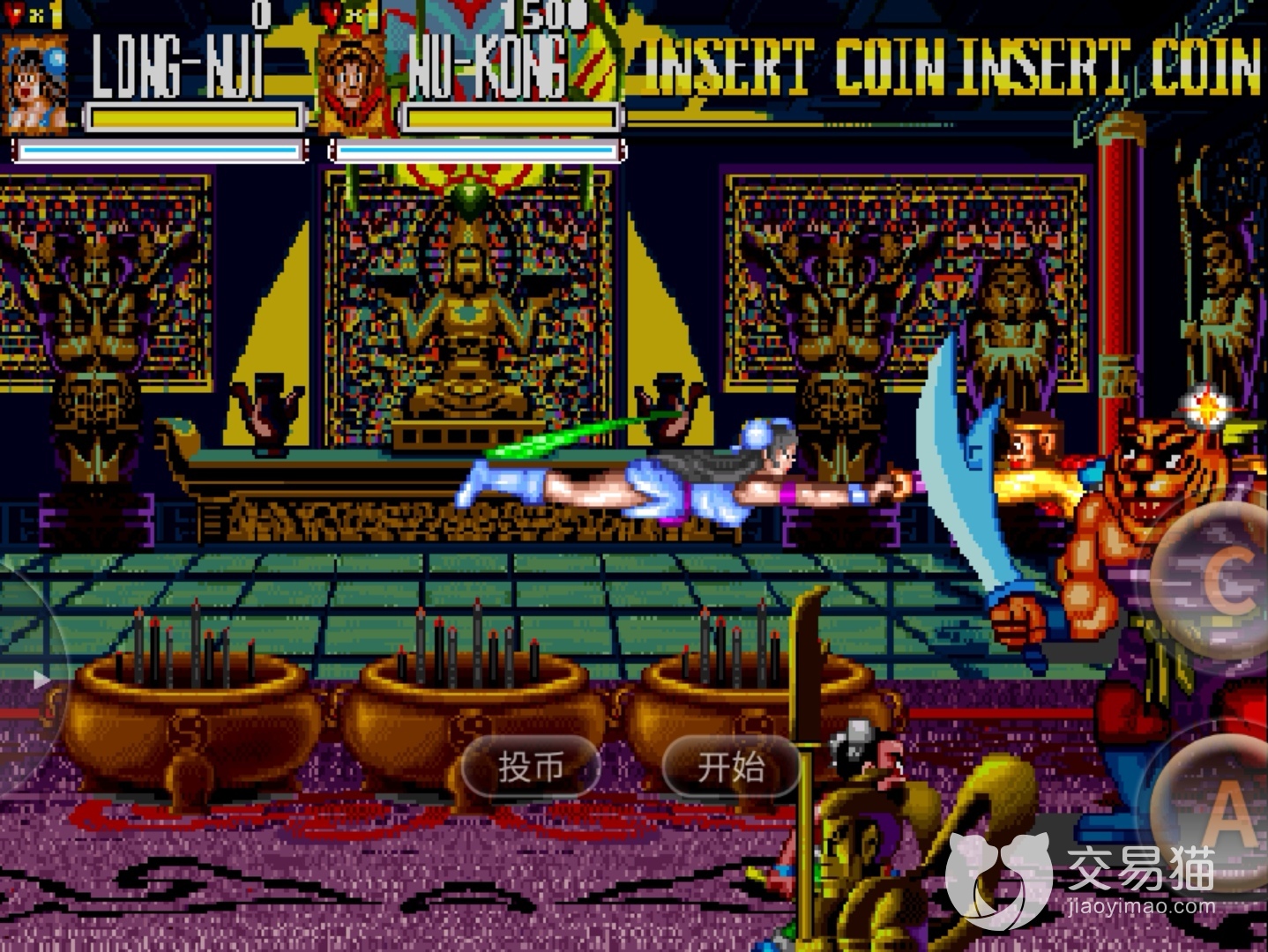 a为普通攻击,C是打开宝物栏,CA的具体方法为:a一下,然后收招时按C再紧接着a,C和后一个a之间衔接越快越好,但注意别同时按下了,在实际战斗时连续a、Ca就可以了。当场上有三个小兵的时候,a一下后不要太快按C,a会有延迟。