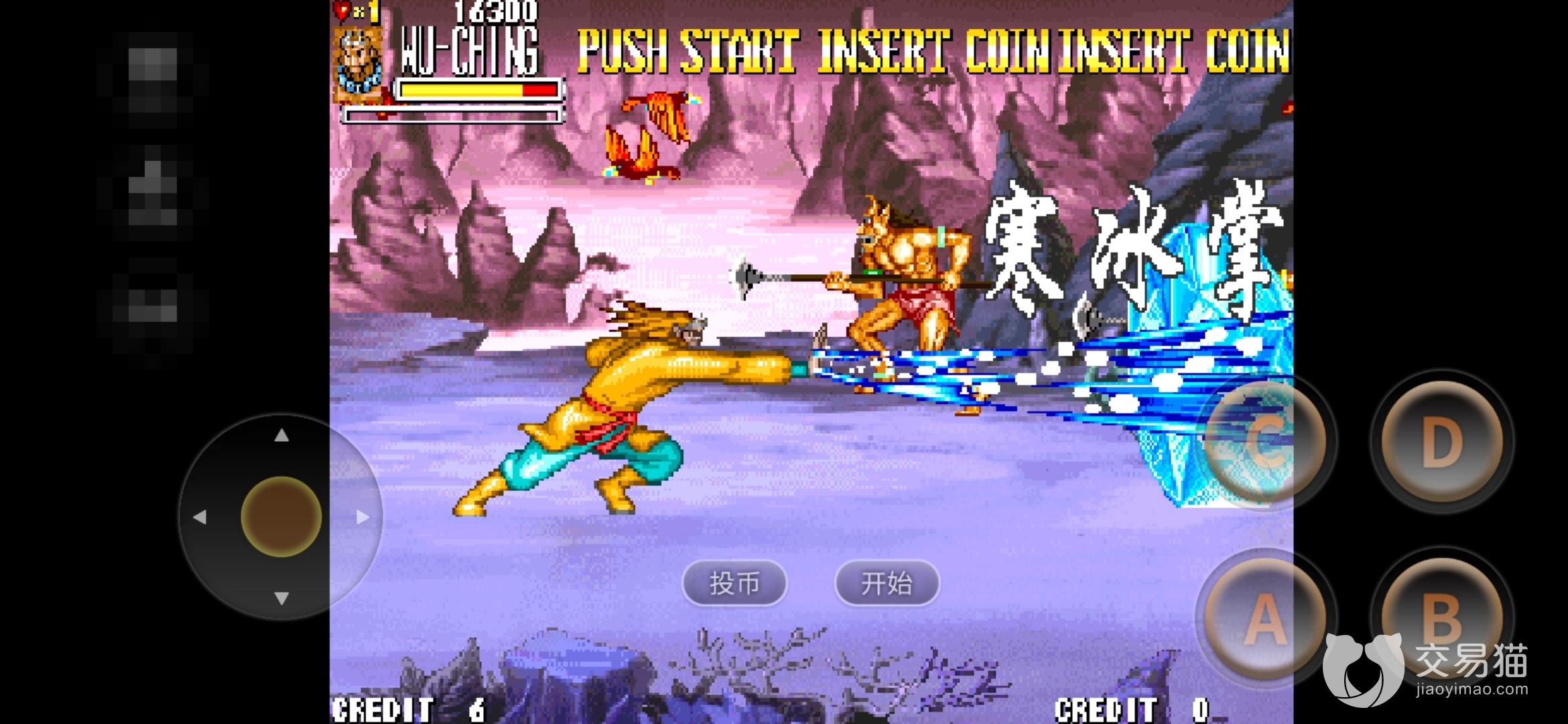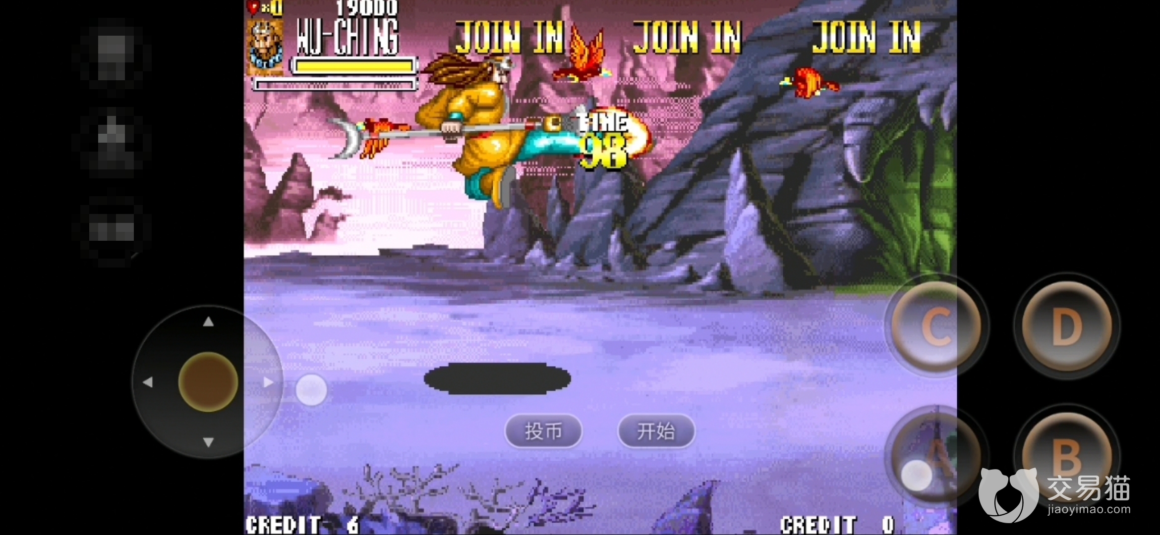 游戏通过摇杆和四个按键控制,A普攻、拾取;B跳跃;C道具栏,通过摇杆上下左右选择道具;D使用道具;A+B+C集气,↑B+C二层集气,角色大招、组合技在气满时才能释放出来;无气时,↓B大斩;左右位移+B飞踢。