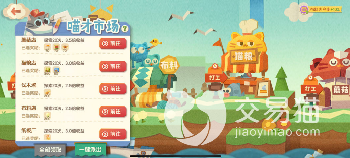 游戏内会有五种变异品种,每次会有三只对应的猫咪,肯定对应的果子也是不同的,玩家们可以前往喵仙人那里使用我们的道具来进行兑换,最多可以兑换50个果子,这是一次性的,玩家们第二天也可以继续兑换。另外,我们也可以通过每天拔草的方式去获取变异果,在路上每天都会长出一堆鲜花,玩家们可以通过不同性格的猫咪去进行拔草,每次拔草都会给我们一个变异果,不过属性是随机的。