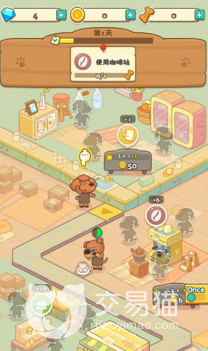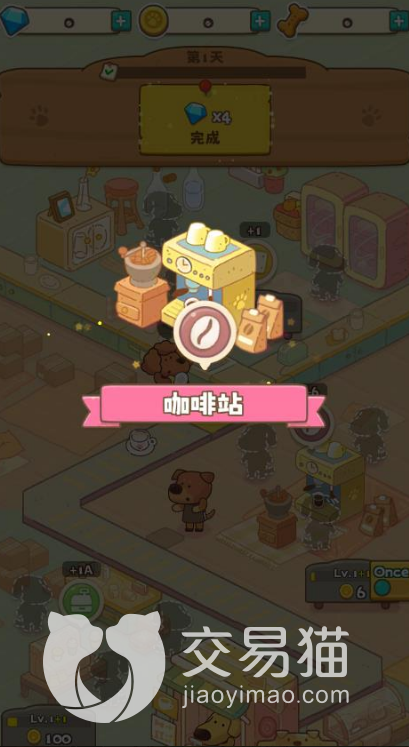 同时,咖啡馆里面的饮品都是需要玩家们不断解锁的,我们在这里可以先进行简单的咖啡制作,后面就可以制造一些焦糖拿铁等等,还有冰激凌等品种,让更多的用户去喜欢。我们需要将每一个小狗派遣到不同的位置,这样才能保证我们咖啡馆的顺利运行。