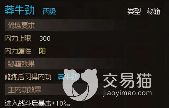 好感度刷到60以上,就可以邀请王大锤进队了,进度以后会给他的钥匙和工具图纸,有了工具之后就可以采集资源。而钥匙可以打开宝箱,获得丙级秘籍莽牛劲和防具精铁内甲,效果是进入战斗增加百分之十的暴击,前期对输出提升来说还算有用。