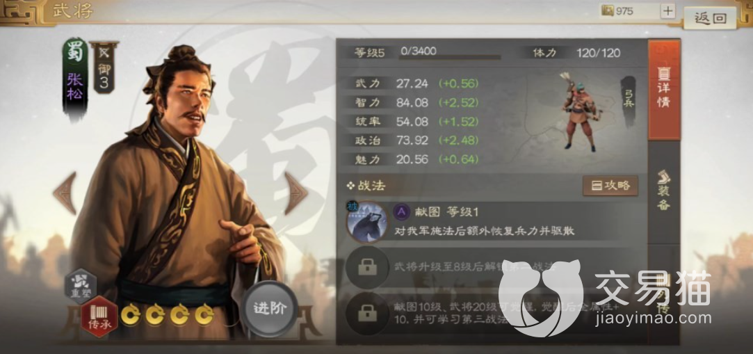 张松智力属性一骑绝尘超越其他属性太多,因此玩家们从属性上就可以把角色的重点放在智力上了。除此以外张松在游戏当中的兵种属于弓兵,玩家们在选择阵容搭配时一定要看好了再动手。