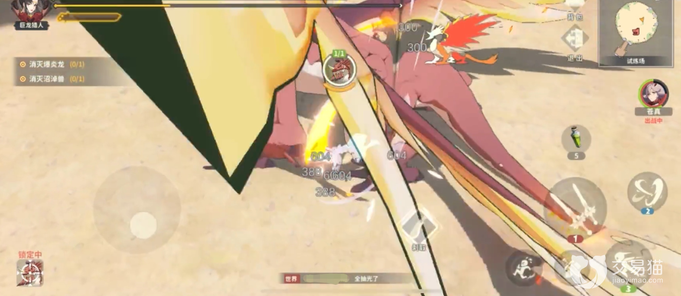 与爆炎龙战斗之前,建议玩家最好先吃点炸肉串补满体力和攻击力,以最好的状态去应战,武器的话,可以带双刀或者巨剑。首先,大家要了解爆炎龙的攻击模式,爆炎龙的攻击就是喷火、前掌拍击和甩尾,它喷出的火会对玩家造成极大的伤害,这也就意味着大家不要正面迎击,同时也要避免被它的尾巴打到,因此玩家可以站到它的侧后方,就是后腿的旁边进行攻击。接着,玩家选择好站位就可以对它进行输出了,可以2技能搭配1技能一起使用,当爆炎龙转身时,玩家要使用3技能冲刺,再一个2技能飞砍起来,这样就可以持续造成暴击伤害。