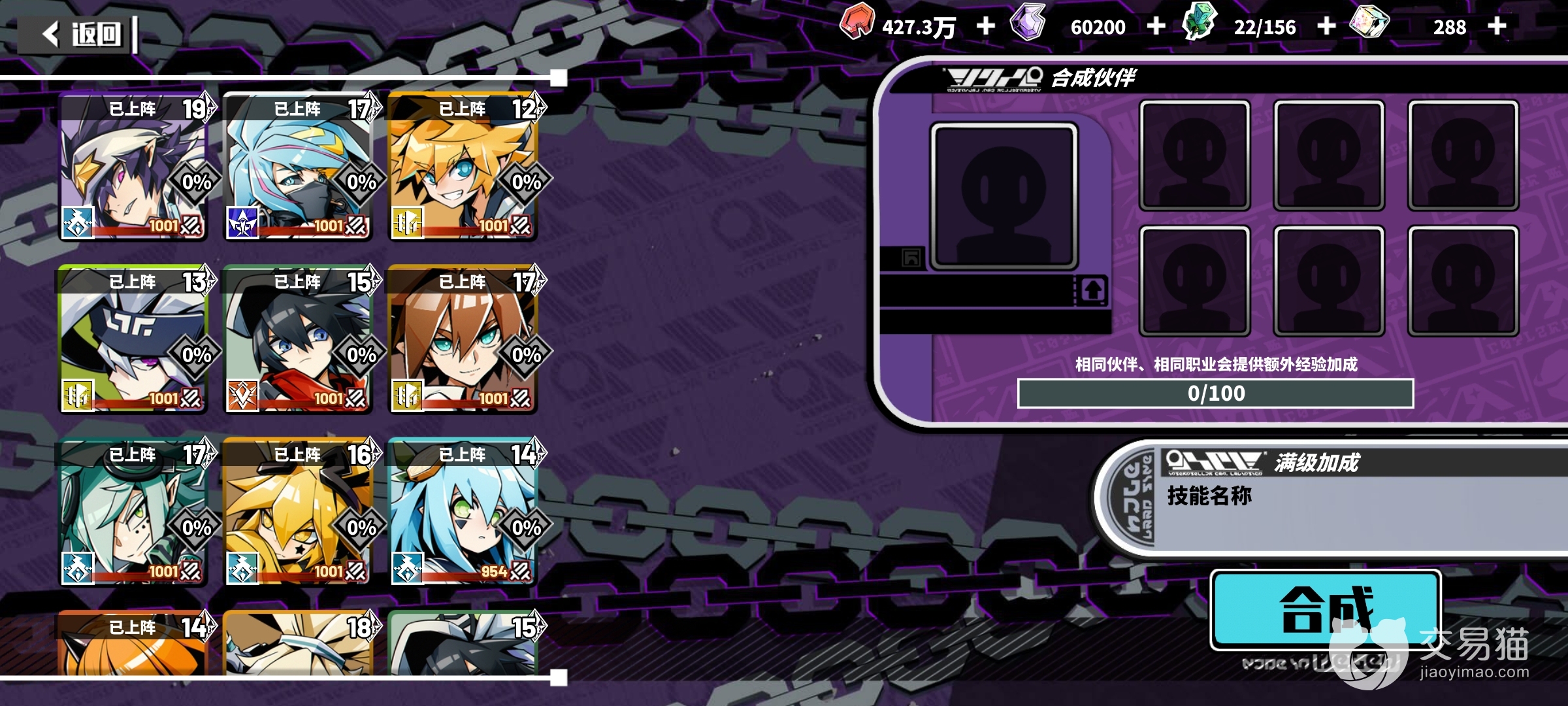 很多玩家开始玩的时候都不注意需要合成角色,这个合成同名字的经验加成翻倍,而且只能合一次,成功之后触发奖励获取随机数量的碎片,只要玩家控制得当,就能帮助自己五星的角色快速升六也就是这个游戏的特色。