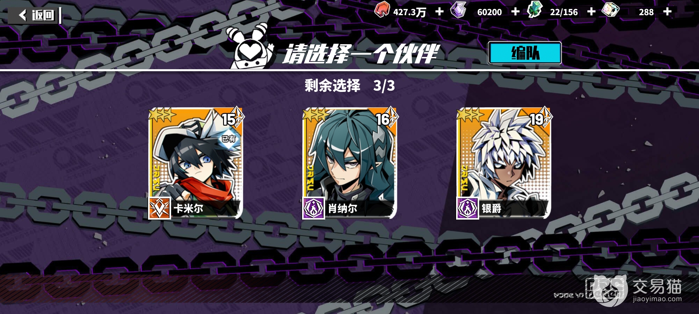 最后这个模式最好的地方就是还能让玩家体验自己没有的角色,一次通关可以选择一个随机的金色合紫色以及蓝色的角色加入自己的队伍,可以上场战斗基本上合自己的角色没有多大的差别,强化一样可以获取碎片。