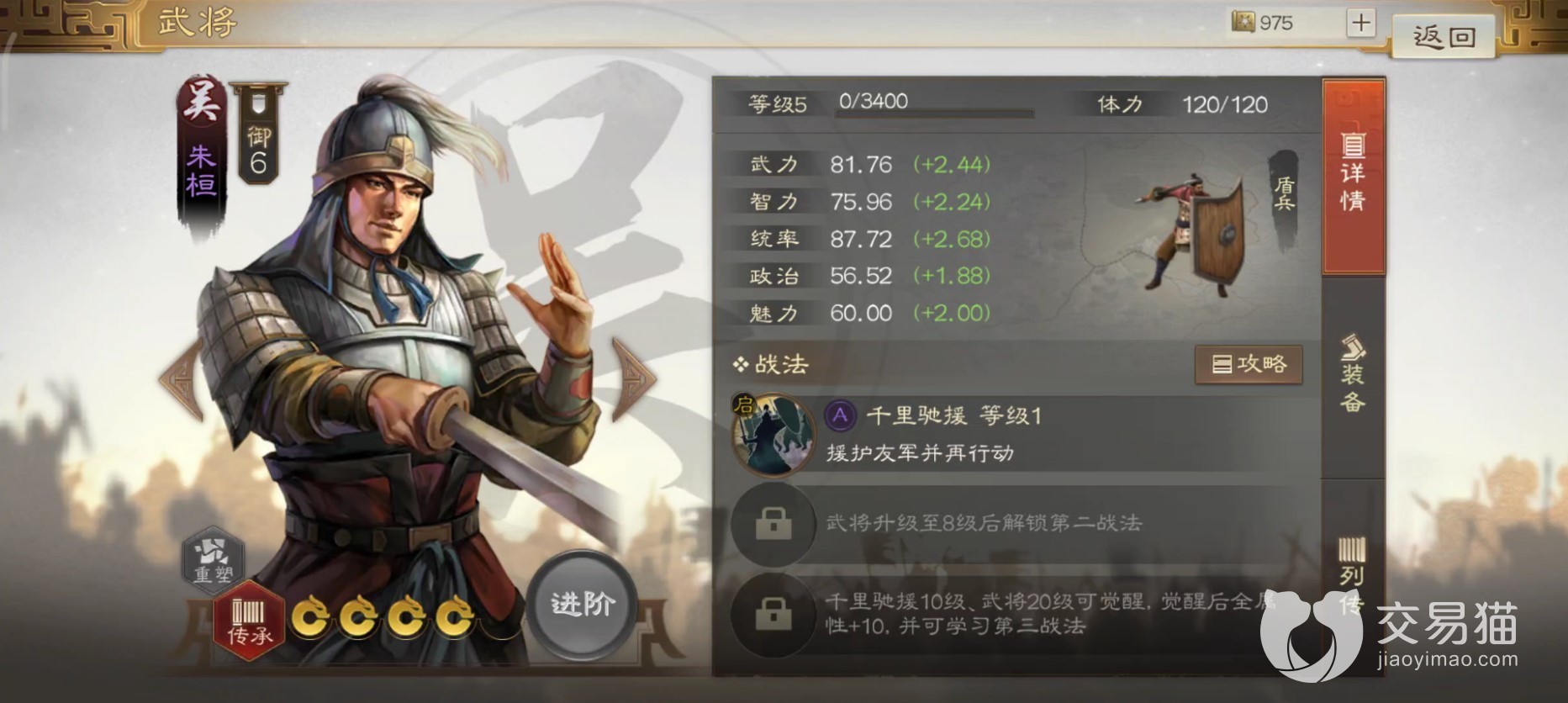 既然是盾兵而且也没有同队加成,组队就比较自由了。自己的坦度虽然经过技能加成后还可以,但毕竟面板兵力还是低,单1个前排盾兵武将还不够,推荐搭配朱恒、陈武来使用,前者能给友军援护自身还有统率加成和再动,后者能为友方分摊伤害提供免伤增益,当然如果有程普就更好了。