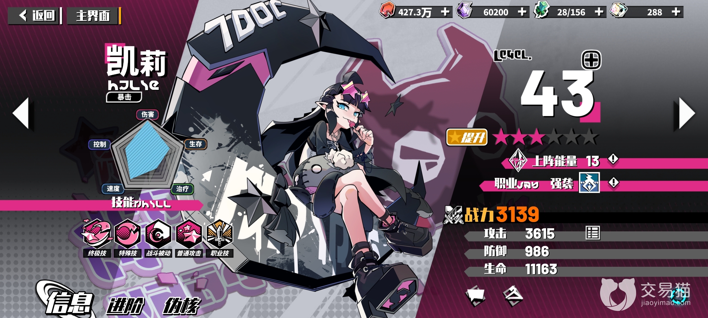 最后升阶之后属性的提升当然也是要比其他角色高出去不少,这几个角色都是潜力角色,但却不是零氪党的选择,,因为都是前期无法满星的角色,实力不突破基本上谁都打不过。