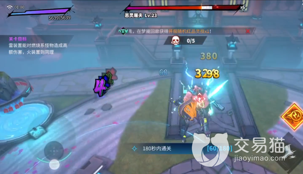 清理多批次小怪后出现倒计时,出现23级的boss恶灵屠夫,玩家放下装置后就出去迎战,确保屠夫在法阵外肉身搏斗,在装备与唐流雨的技能发射底下,能在限定时间内秒掉boss。